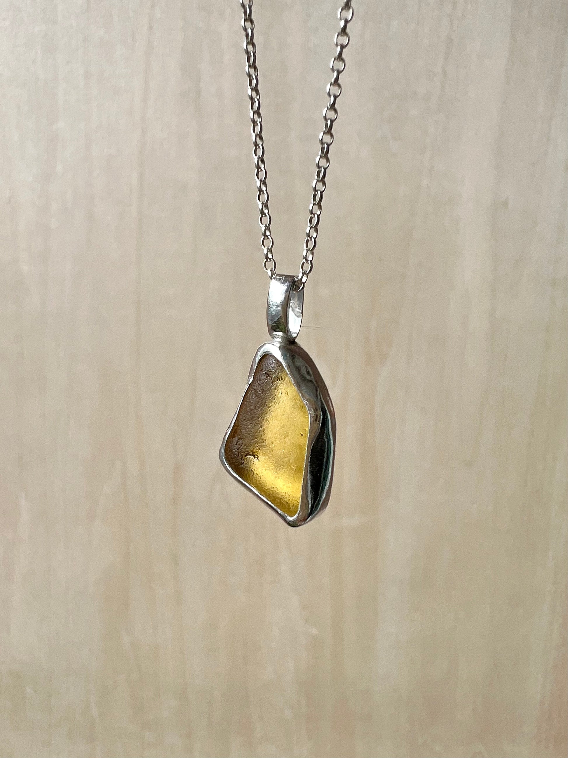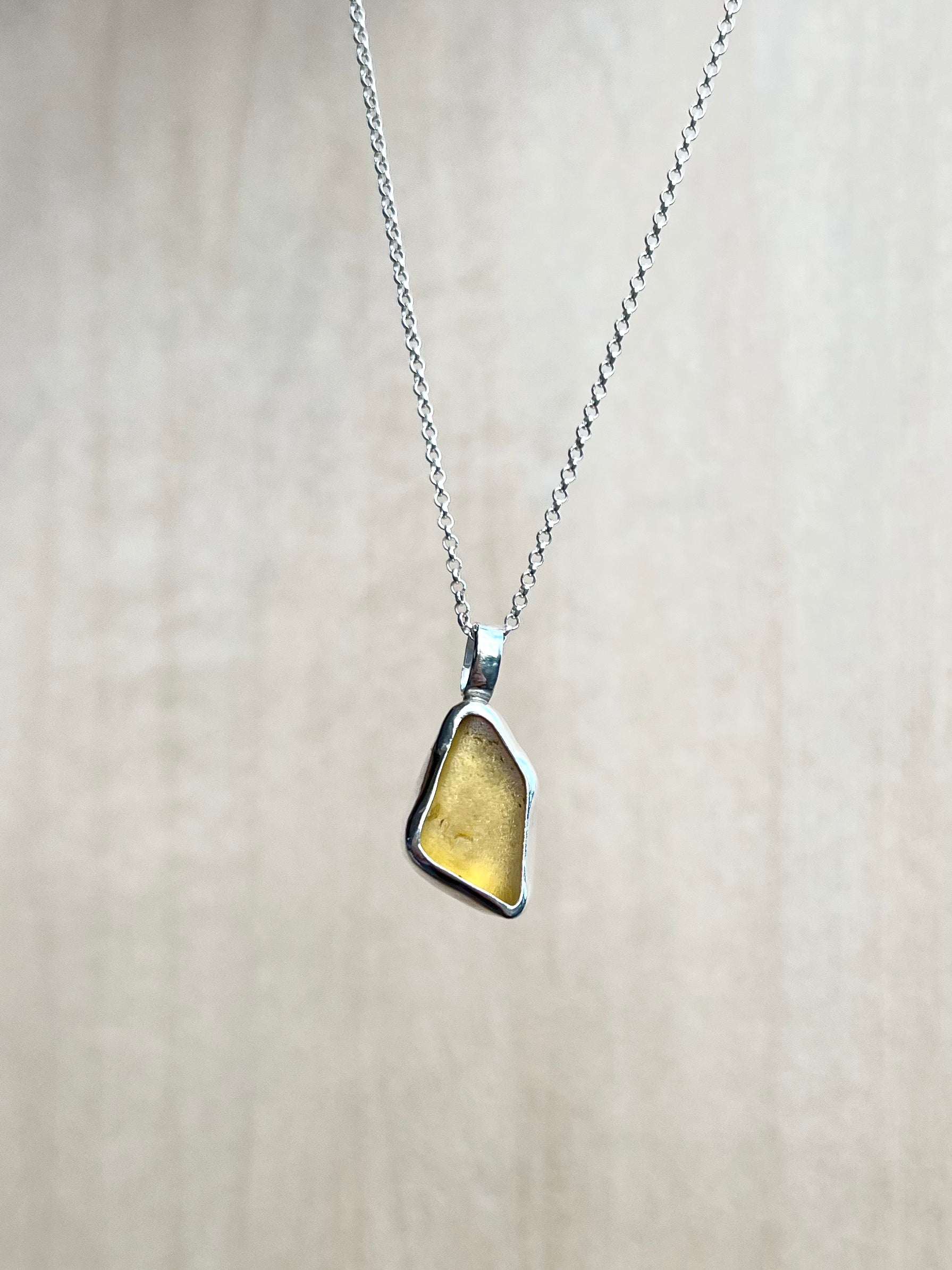 Yellow sea glass necklace