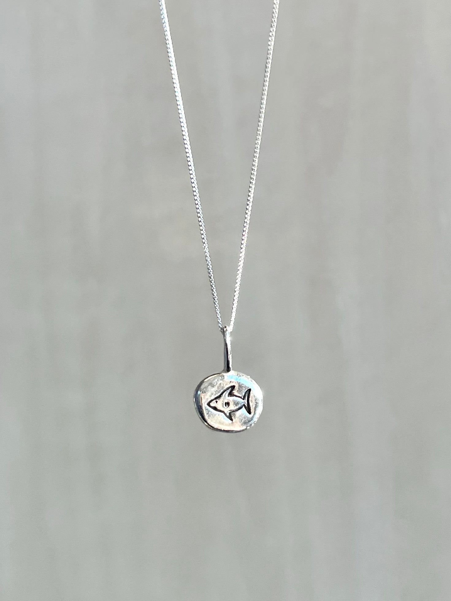 For this necklace I recycled silver scraps and stamped them with a cute shark.