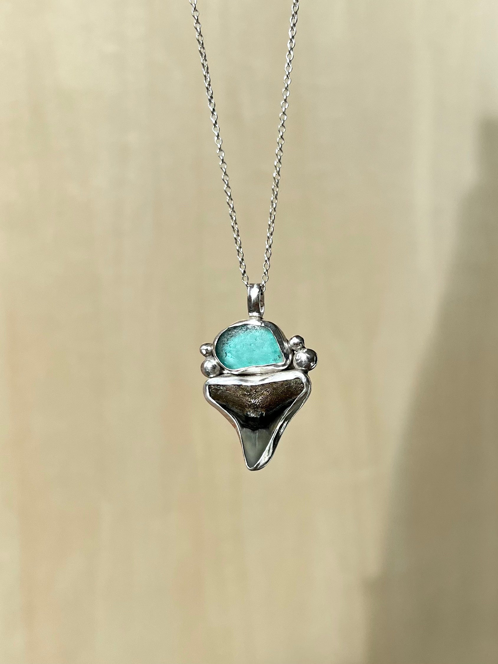 Shark tooth sea glass necklace