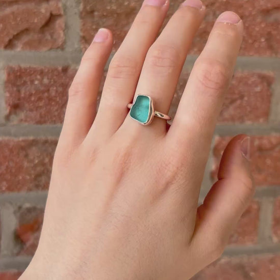 Light blue sea glass ring size 55/7