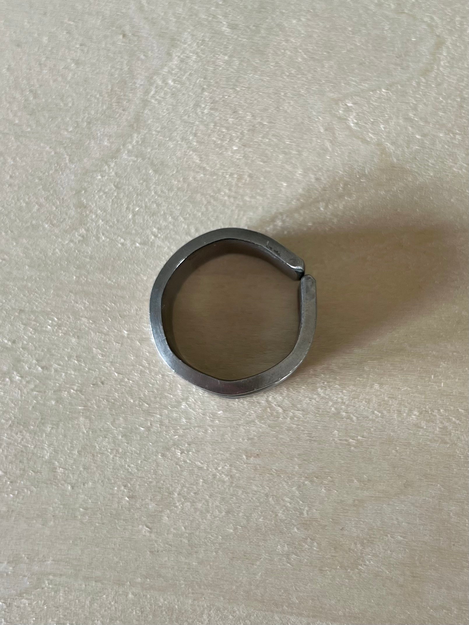 This ring was originally a stainless steel fork, which was lovingly crafted into a solid ring. It is very durable and stable, making it extremely long-lasting.