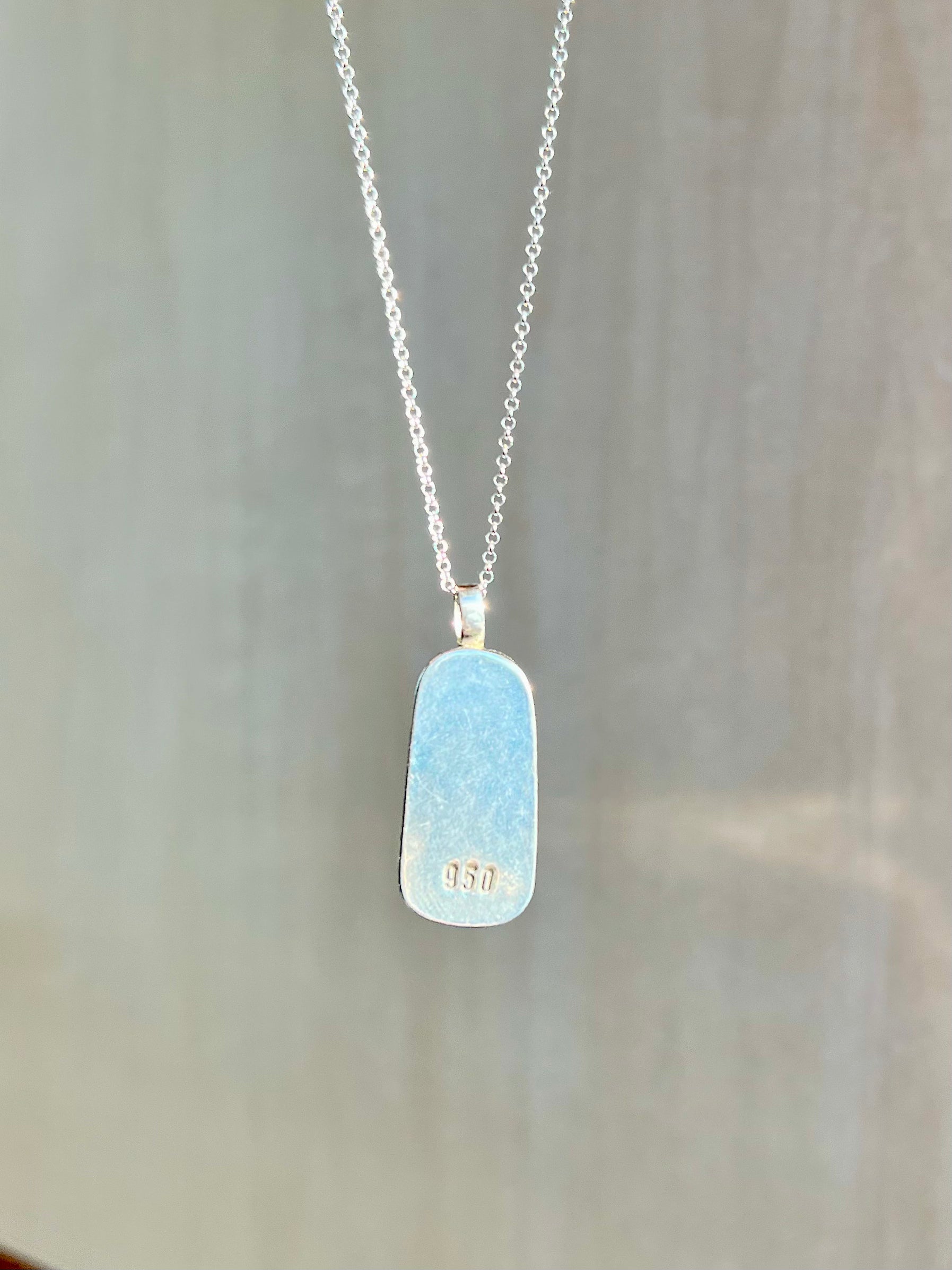 Der Anhänger wurde aus 950 und 999 Silber gefertigt. Die Kette ist aus 925 Silber und im Preis inbegriffen. Da es sich hierbei um ein handgemachtes Schmuckstück handelt, sind Unperfektionen nicht auszuschließen. Hinweise zur Pflege des Schmucks findest du hier: „Pflegehinweise“.